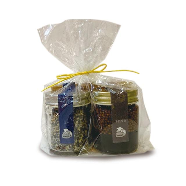 商品説明: ●原材料:マスタード/有機イエローマスタードシード(インド産)、有機純米醸造酢(福岡県産)、天然醸造丸大豆醤油(九州産)、黒糖(多良間産)、海水塩(沖縄産) おむすびマース/有機ごま(パラグアイ、エチオピア産)、海水塩(沖縄産)