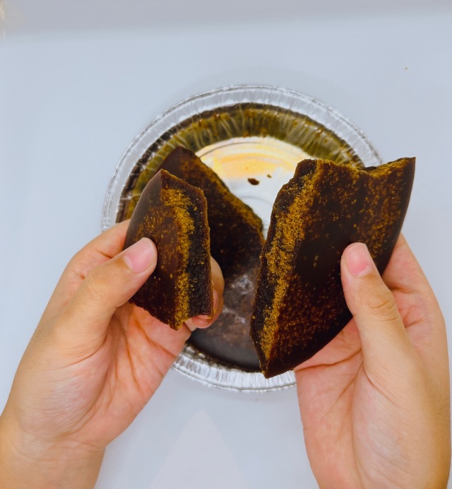 柔らかめの黒糖なので手で割って食べることができます。濃厚でクッキーのようなサクサクとした食感の黒糖は、緑茶やコーヒーとの相性も抜群!