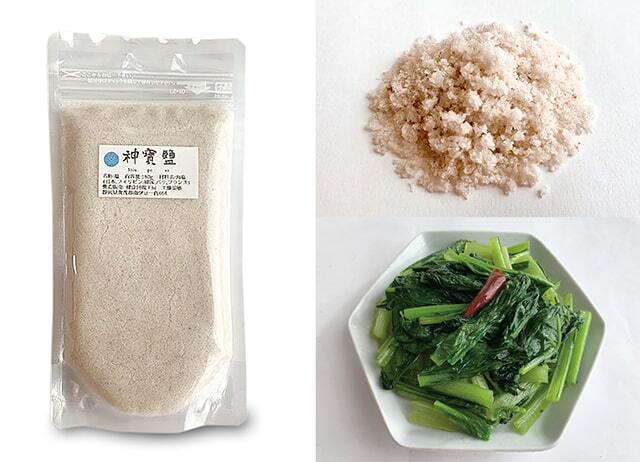 健康回復工房・工藤さんの作る『神宝塩』は、世界中の生産者を訪ねながら良質な海塩をリサーチし、厳選してブレンドしたお塩です。ほのかに硫黄の香りのする独特な風味や旨みがあるので、素材の味を引き出したいシンプルな調理にも最適。おにぎりや野菜炒め、魚介料理、野菜サラダなど食材本来の美味しさを引き出す味付けに使うのもおすすめ。塩の粒の大きさがランダムなのもブレンド塩ならではですが、塩おむすびやドレシングなどにご利用の際はしっかり溶かしてご使用ください。