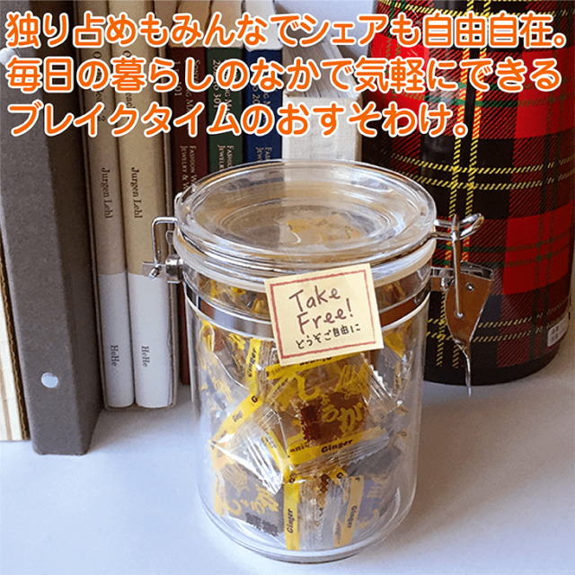 ちょっと甘いものが欲しくなるのは、体や脳が休息を望んでいる証拠。ゆっくりおやつの時間をとる間がないときにもパクっと一粒ほおばれば、素朴な甘さと程よき辛みの刺激でエネルギーチャージでき、その後の作業効率もアップするでしょう。